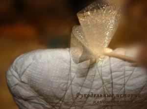 Итак, горшок остыл, стволик крепко держится, можно начинать клеить органзу. Наберитесь терпения, на это уйдет, не один час