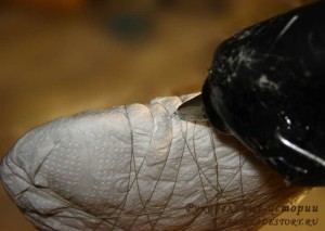 На горячий клей фиксируем бородку.