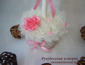 Нижнюю часть тоже украсим розочкой, бусинами. К горшку приклеим бантик.