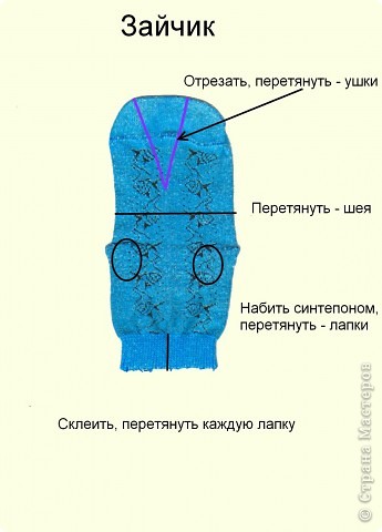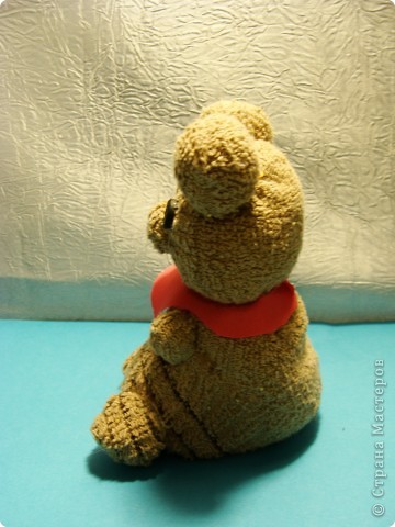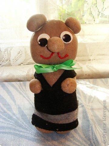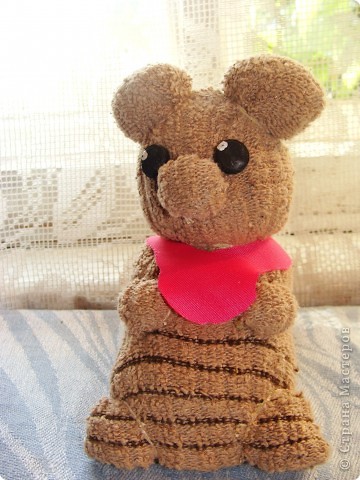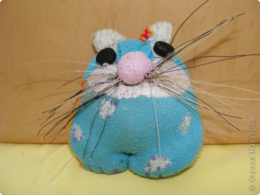 Сделан он из целого носочка, хвостик у него из “пяточки” носочка.