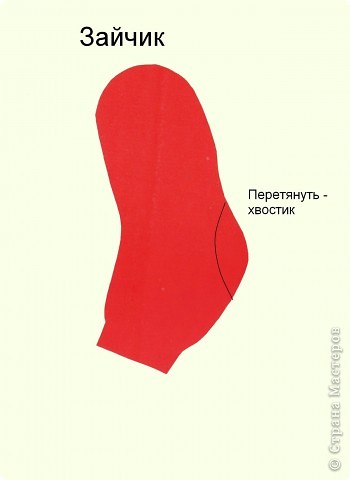 Хорошо, если носочек разноцветный. У нашего зайчонка белые лапки, белый хвостик и белые ушки.