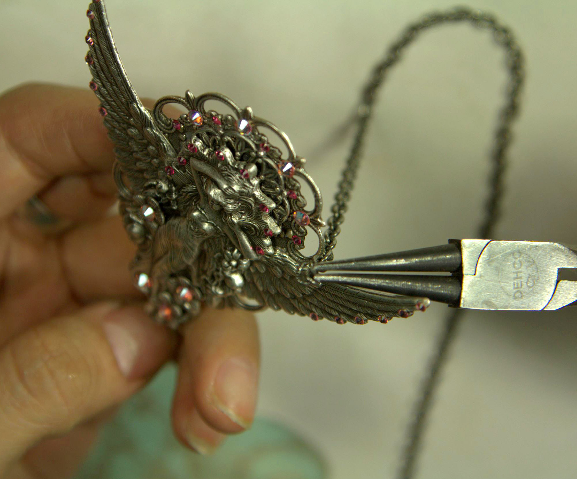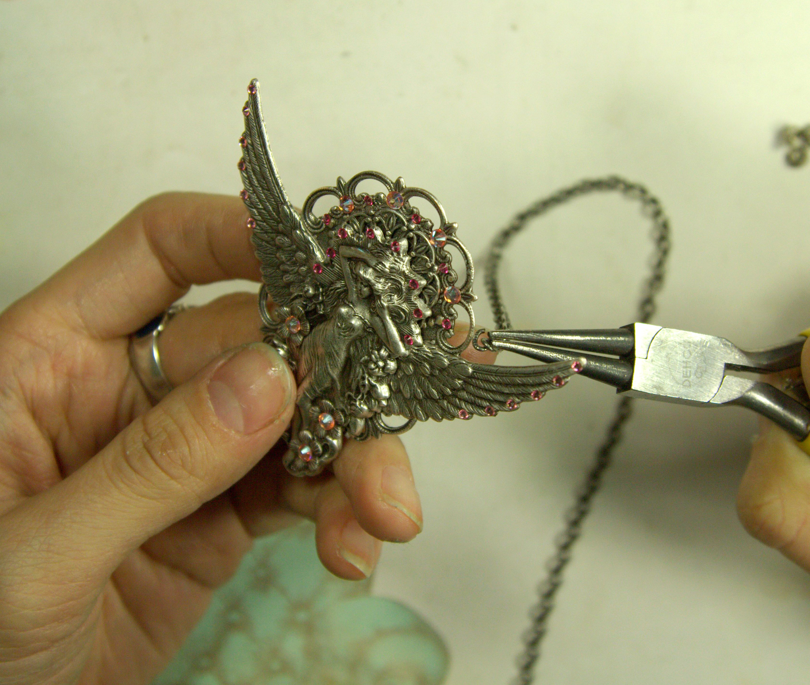 Разъединяем цепочку в нужном месте и прикрепляем туда наш декоративный элемент.