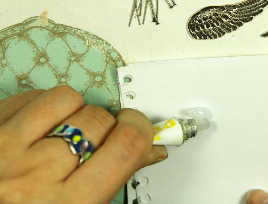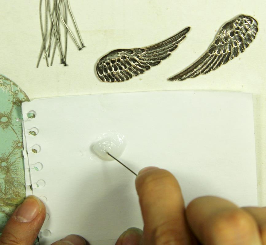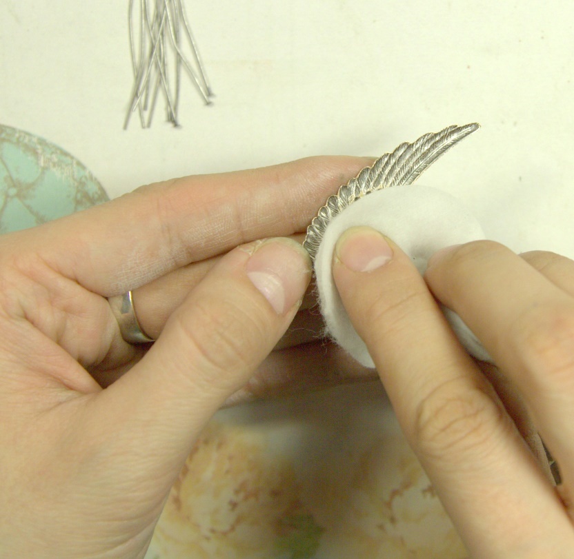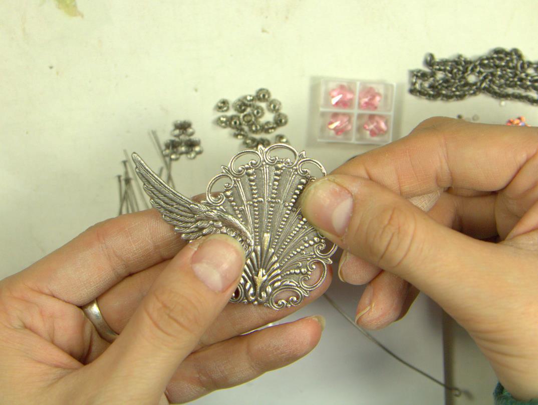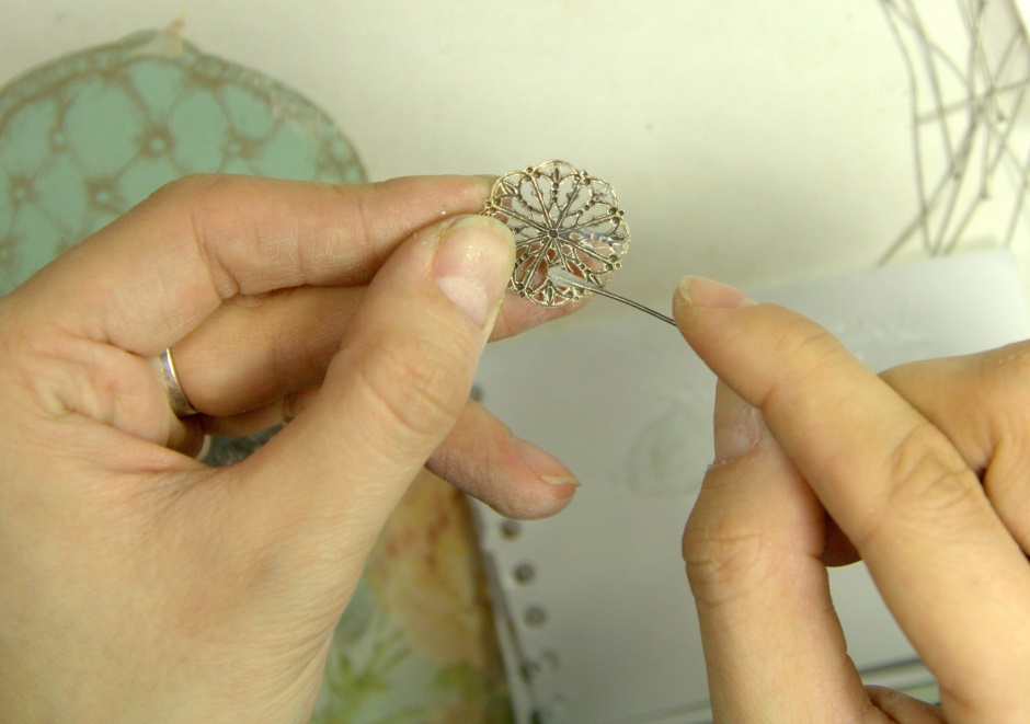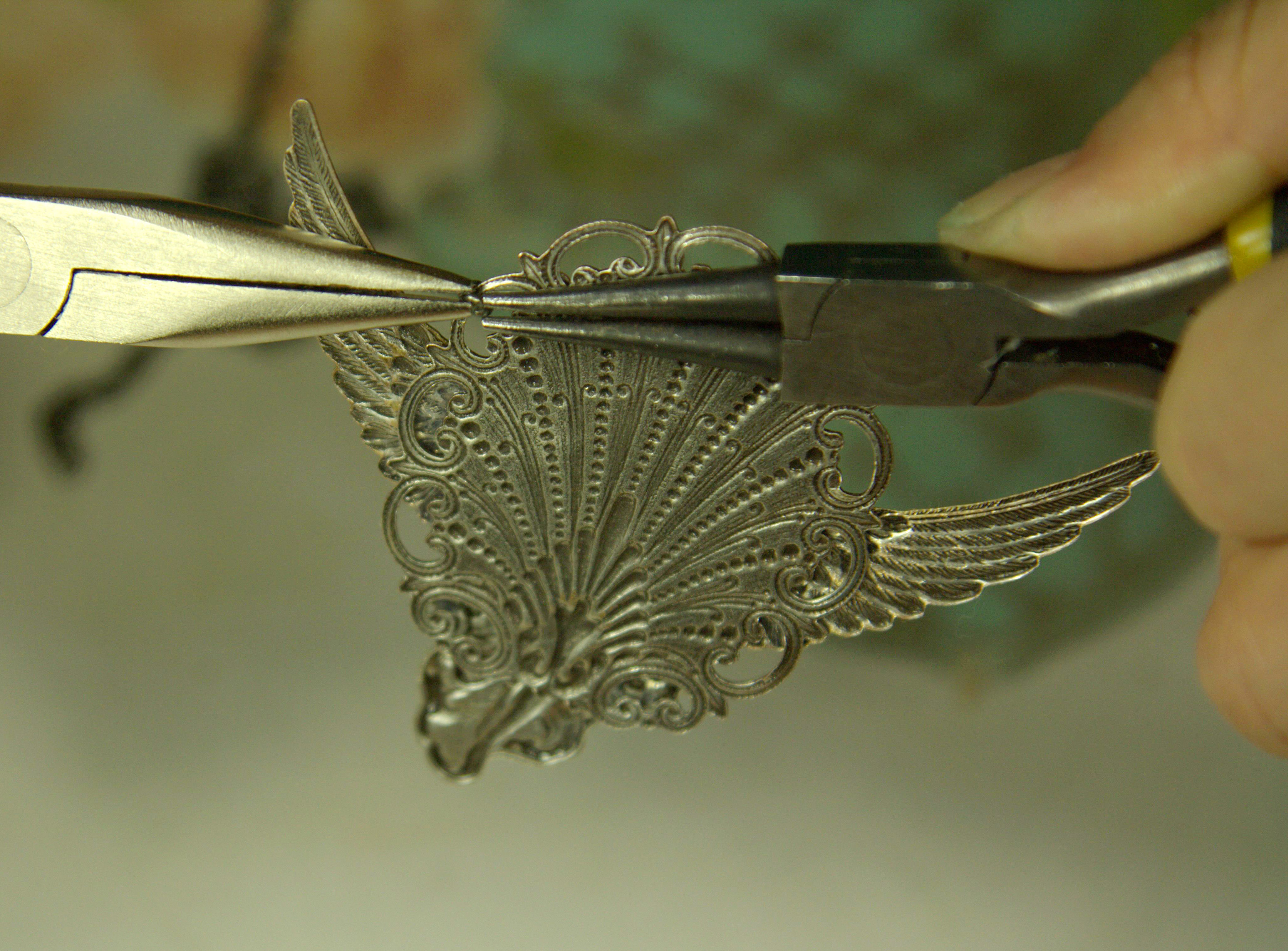 Теперь приклеиваем нашу винтажную филигрань к основе. Перед приклеиванием проделываем те же процедуры, что и с крыльями.