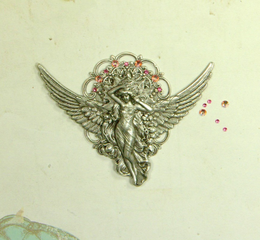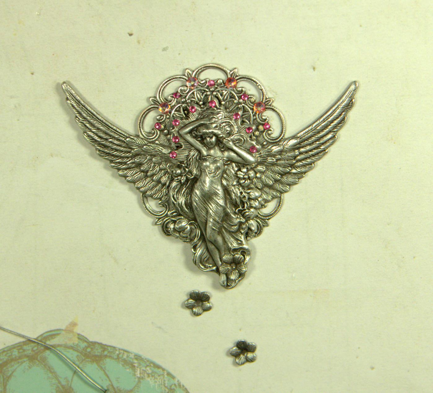 И наконец, приступаем к приклеиванию нашей богини сверху на крылья и филигрань.