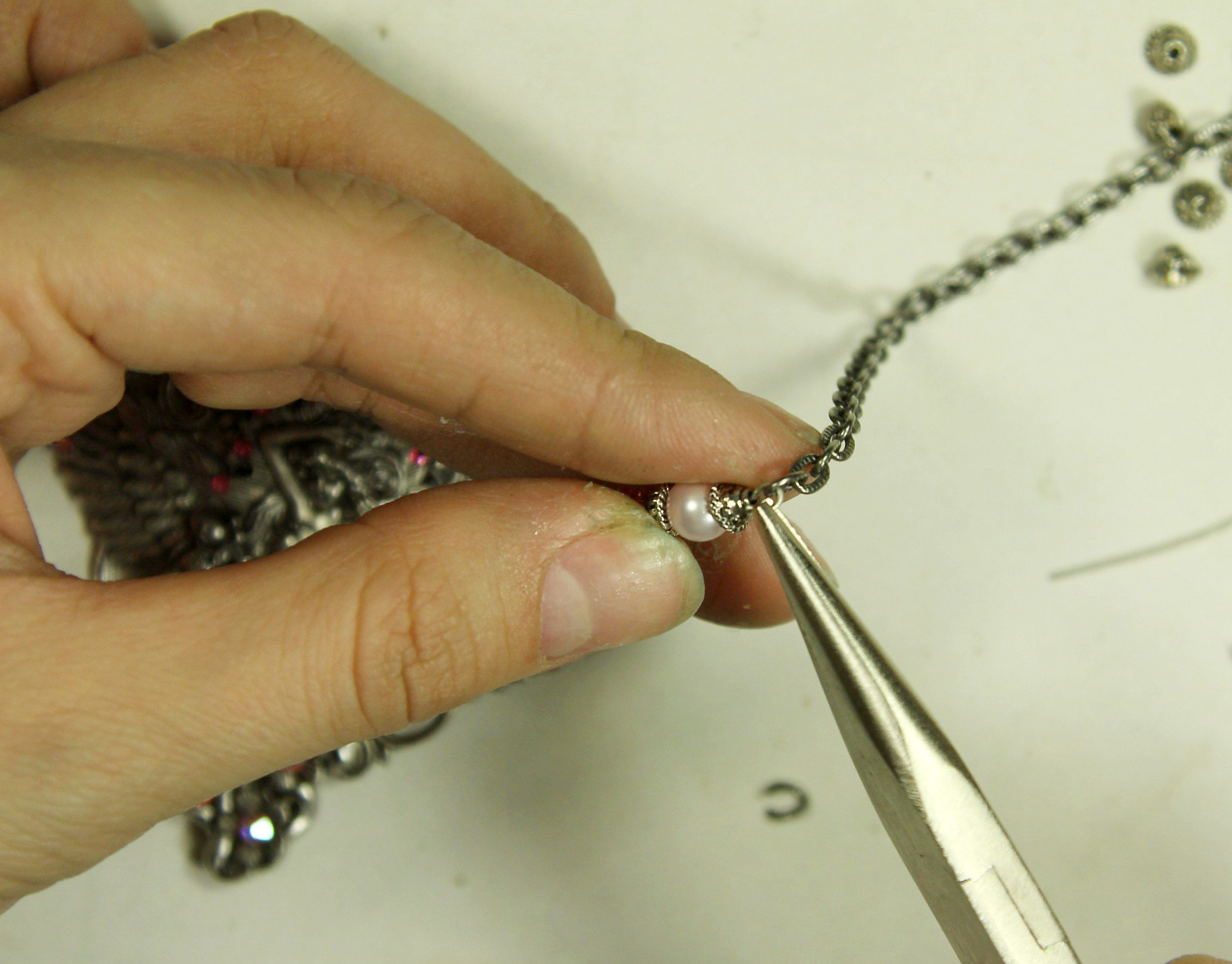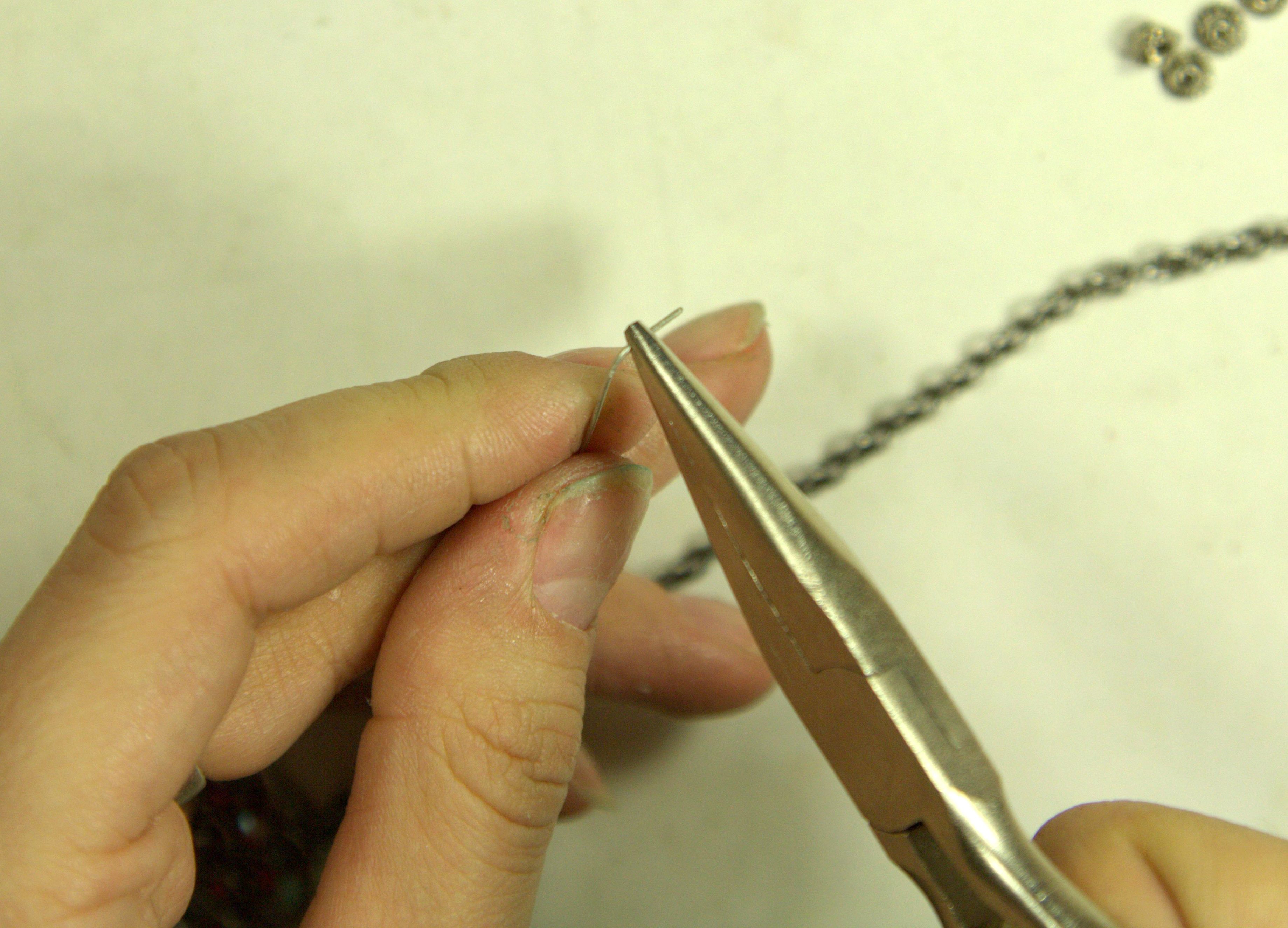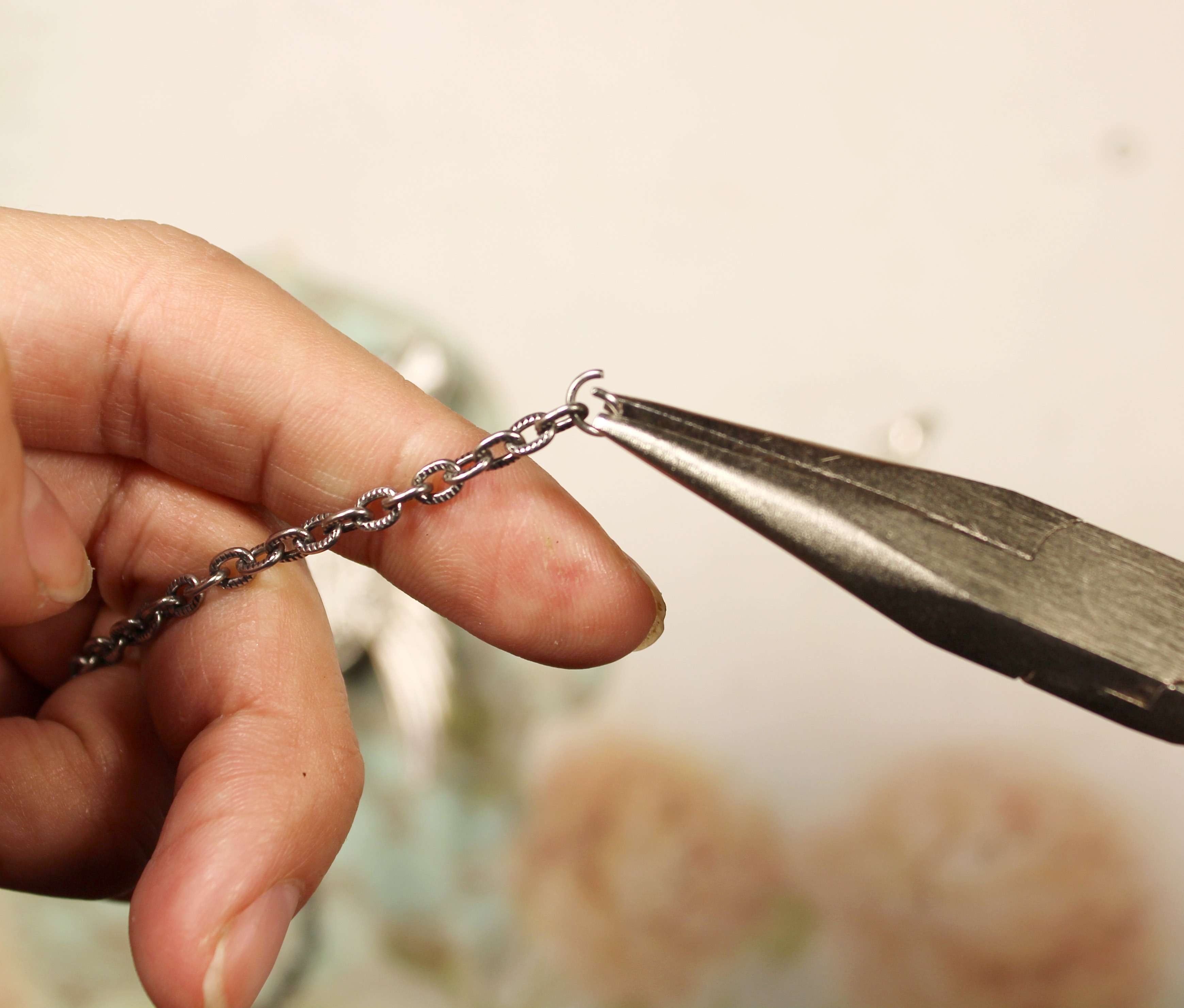 Откроем звено цепочки и присоединим её к кулону.