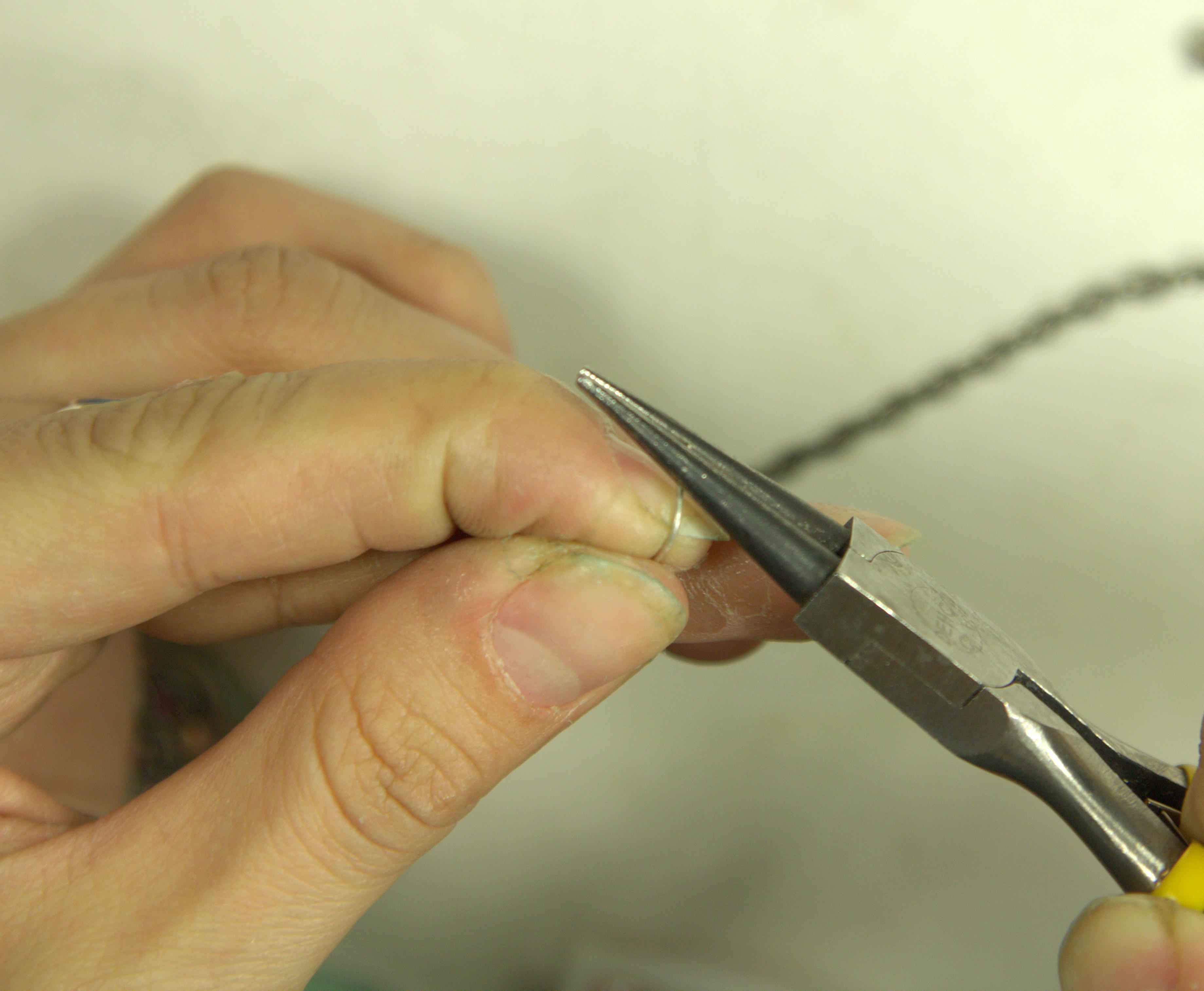 Длина накрутки зависит от размера сережек. Когда длина спиральки вас устроит, откусите проволоку кусачками, оставив небольшой кончик.