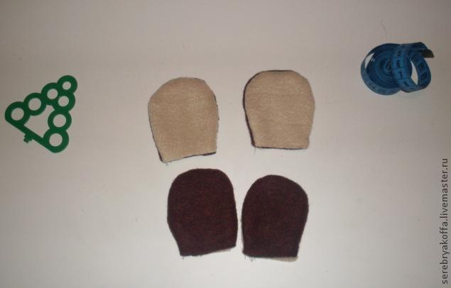 - Теперь берём наши войлочные стельки и выкраиваем по ним две детали из внутреннего флиса ( у меня светлый).