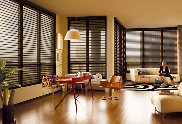 Самый распространенный вариант расположения ламелей – горизонтальный. Такой вид штор дает возможность максимального затемнения. Чтобы наполнить помещение светом, полотно сборками поднимают вверх, так оно занимает минимальное количество места.