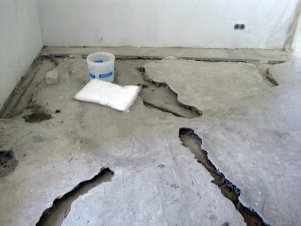- Заделка полостей и щелей в основании. Для этого имеющиеся на полу балкона выбоины и трещины сначала необходимо расшить с помощью болгарки, после чего заполнить их цементно-песчаным или эпоксидным (при необходимости максимального ускорения сроков работ) раствором.