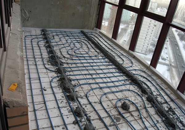 - Активное утепление. Направлено на увеличение количества поступающего в помещение тепла. Связано с установкой на балконе системы отопления «теплый пол».