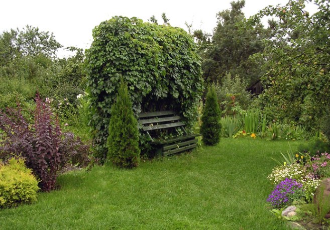 Отдельно хотелось бы выделить вьющиеся растения. Их часто используют, чтобы декорировать живую изгородь или беседку. Чаще всего используют различные сорта винограда, гортензии, жимолости и плюща. Живая изгородь – это целое произведение искусства.