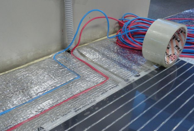 Для увеличения срока службы желательно оголенные концы залудить. Это не только улучшает контакт в местах соединения и препятствует процессам окисления, но и повышает безопасность пользования теплым полом. При недостаточном контакте зажимы сильно нагреваются и могут расплавить линолеум. Возможны ожоги ног, поражение током или возгорания. Все зажимы с подключенными проводами нужно изолировать специальной битумной пленкой с двух сторон. Внимательно следите, чтобы серебряные контакты термопленки были полностью заизолированными снизу и сверху.