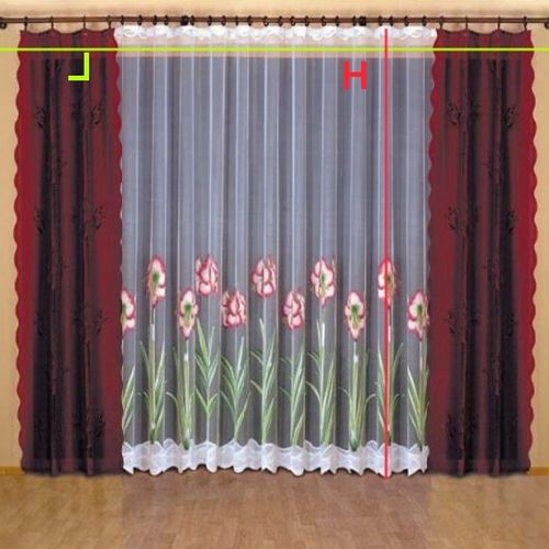 - быть длиной до подоконника, не дотягиваясь нижним краем занавески до его поверхности на 1 см,