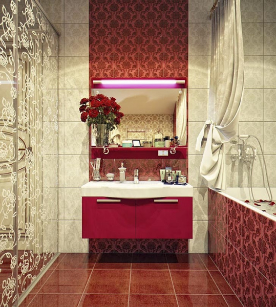 В зависимости от стиля оформления выбирайте аксессуары и декор. Сегодня в моде массивные статуэтки, которые используются в тропическом и этническом стиле. Для современного оформления следует подобрать функциональные аксессуары: корзины для белья, живые цветы, крупные свечи.