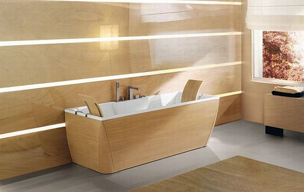 В санузлах всё чаще применяют для отделки натуральное дерево или его качественную имитацию.