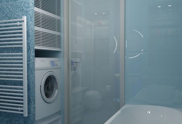 Дизайн маленькой ванны со стиральной машиной