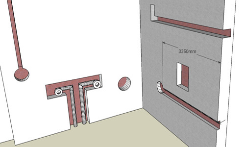 - Борозда при вертикальном движении должна быть отдалена на 100 мм от дверей, окон и углов, и на 400 мм от газовых труб.