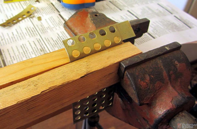 Конечно, наиболее простой способ определить массу — это взвесить груз на точных электронных весах. Но если весов под рукой нет, то приблизительно ее можно вычислить, перемножив длину, ширину и толщину груза (таким образом получив объем) и далее умножив полученное число на 11,4 (плотность свинца) — погрешность составит ±5 г. Определившись с размером кормушки, вырезаем ножницами по металлу нужную нам заготовку. Загиб осуществляем при помощи двух деревянных брусочков. Если размер кормушки будет постоянным (я изготавливал кормушки и прямоугольной, и квадратной, и треугольной формы), то можно обойтись и одним, обогнув заготовку вокруг бруска нужного сечения.