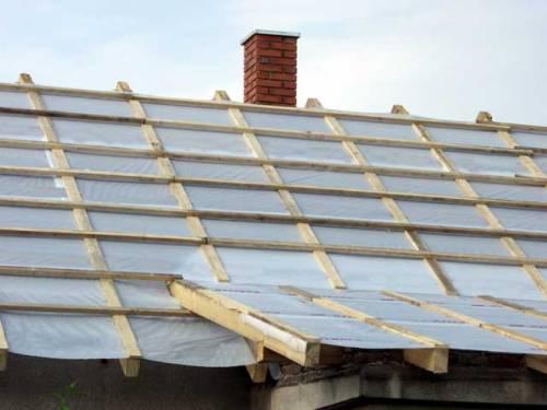 Довольно распространенная ошибка – укладка гидроизоляционного материала вдоль стропил (от конька к нижней части крыши). На самом деле технология требует укладки гидроизоляции поперек стропил, начиная снизу и двигаясь вверх. Полотна обязательно должны укладываться внахлест, нижний край должен заводится на карниз к водостоку. При использовании рубероида он укладывается в два слоя. Для фиксации материала нельзя использовать скобы, его крепление обеспечивают брусья под обрешетку. При использовании диффузионных гидроизоляционных материалов нужно обратить внимание на то, какой стороной они укладываются, при неправильном монтаже такие материалы не смогут правильно выполнять свои защитные функции. Гидроизоляция при укладке не должна иметь складок, порезов, провисаний.