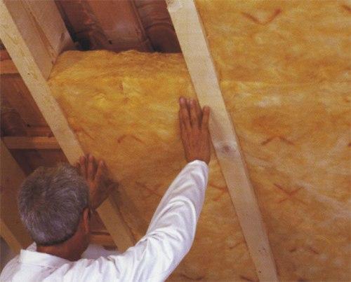 Если определяясь, как утеплить крышу дома, был выбран ватный плитный утеплитель, то подготовленные элементы необходимо, слегка сжав, вставить между стропилами. При использовании более жестких плит из пенопласта и подобных материалов, важно точно подгонять их под размер, чтобы плиты плотно вставали в проем. Утепление рекомендуется выполнять в два слоя. Если приходится в проем монтировать не цельные листы, а более узкие фрагменты, стыкуя их по длине или ширине, необходимо проследить, чтобы стыки второго слоя не совпадали со стыками первого. Теплоизолятор не должен выступать за плоскость стропильных ног. Если стропила имеют недостаточную ширину для монтажа двух слоев утеплителя, к ним прибивается дополнительный брус.
