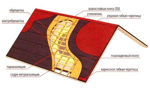 Схема крыши из битумной черепицы