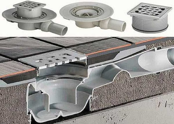 - при выполнении стяжки в полу сразу же закладываются трубы для подключения душевого трапа (трапов);