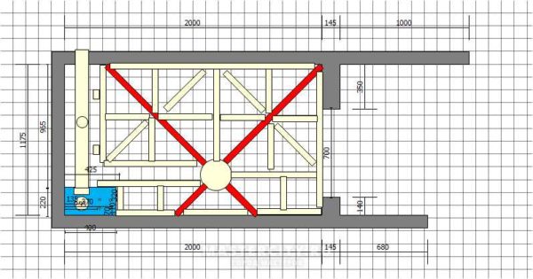 - после определения необходимой глубины чаши выкапывается в границах ленточного или свайного фундамента котлован, глубина которого больше глубины чаши на толщину гравийно-песчаной подушки (10…20 см), бетонирования (30…50 мм) и гидроизоляции (битум + рубероид в два слоя, около 10 мм). То есть уровень котлована ниже уровня чистового пола на 231+200+50+10=490 мм, в расчете приняты максимальные значения;