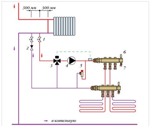 Наряду с этим имеется ряд схем, по которым можно сделать правильное подключение к системе централизованного отопления без вреда для теплого пола.