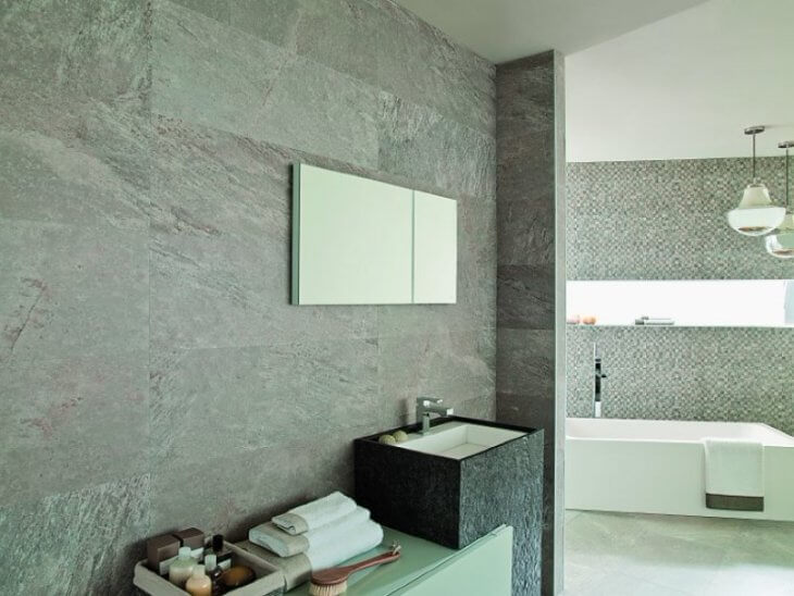 Отделка стен в ванной под камень