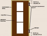 Основание делают из брусьев. Для производства используются преимущественно материалы из сосны. Брусья располагаются по периметру конструкции, а в некоторых случаях делают дополнительные вставки для монтажа фурнитуры. Большее значение имеет наполнение двери. От этого зависит качество звуко- и теплоизоляции конструкции. В основном используется картон или оргалит.