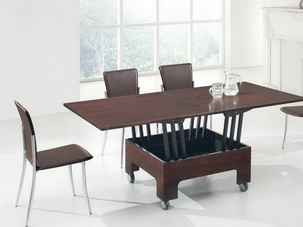 Изделия трансформеры удобны тем, что в зависимости от обстоятельств их габариты легко изменить. Например, для таких событий, как приход гостей или празднование торжества, можно превратить журнальный столик в полноразмерную модель. Умный механизм даже поможет отрегулировать высоту изделия путем поднятия столешницы. Складные столы занимают минимум места и экономят пространство в небольших помещениях.