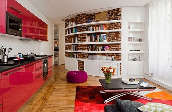 Для любителей постоянных перестановок предлагается мебель из нескольких составных деталей. Форма каждого элемента может быть круглой, квадратной или другой конфигурации. Суть в том, что вместе все части являются одним целым кофейным столиком. Но в тоже время каждая из частей передвигается на колесиках в любом направлении и является самостоятельным предметом мебели, причем полноценно используемым. Если окрасить такой трансформер в белый цвет или яркие тона, он может стать частью дизайна в детской комнате.