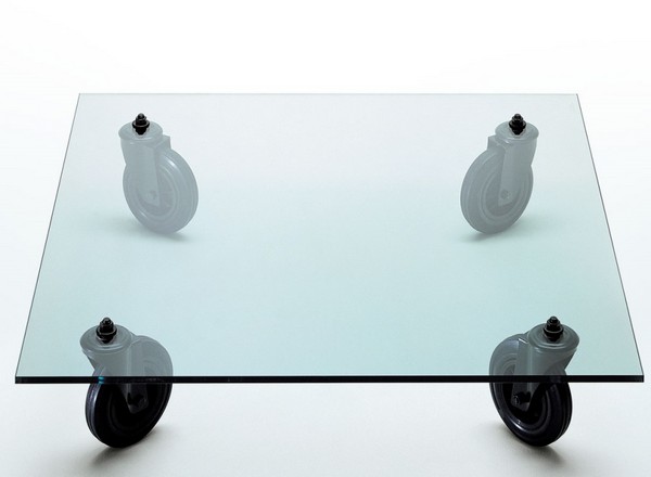 Журнальный столик из стекла на колесах фото