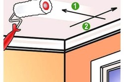 Важно учесть и то, что на потолке могут образовываться капли – это происходит при слишком жирном слое. Т.е. нужно следить за равномерностью покрытия. Углы или труднодоступные места для валика нужно проходить кисточкой.
