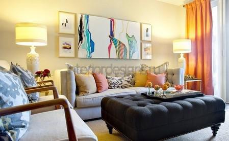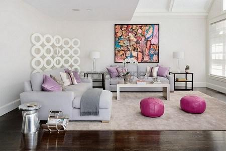 Тем, кому не по душе монотонность, понравится идея создания контраста. Так, мягкое сиденье может стать независимым предметом мебели, если его цвет будет контрастировать с общим фоном. Очень необычно и красочно смотрятся красные, фиолетовы, лимонные, малиновые, салатовые пуфы на нейтральном фоне с преобладанием пастельных, серых или белых оттенков.