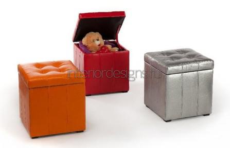 – пуфик-тумба. Такие пуфики в интерьере выполняют сразу две функции: служат местом для сидения и местом хранения разнообразной утвари. Конструктивно они состоят из сидения, ящика или полки под ним, но при этом сложная конфигурация не сказывается на их эстетической привлекательности. На полках и ящиках удобно хранить обувь, зонты, ключи и другие мелкие аксессуары, ввиду чего, пуфы-тумбы чаще всего приобретают для прихожей.