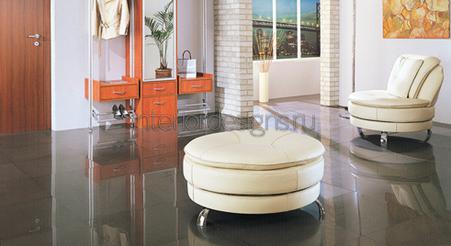 – гостиной. Здесь они становятся частью мебельного ансамбля и идеально дополняют мягкий уголок. Мягкие сидения в гостиной обычно используют как подставку для ног или кофейный столик. В первом случае необходимо позаботиться, чтобы высота пуфа была меньше, нежели высота дивана или кресла; иначе вам вряд ли удастся расслабиться во время просмотра фильма либо чтения книги. Во втором случае рекомендуется выбирать жесткие изделия с ровной поверхностью, дабы было легко поставить поднос с посудой;