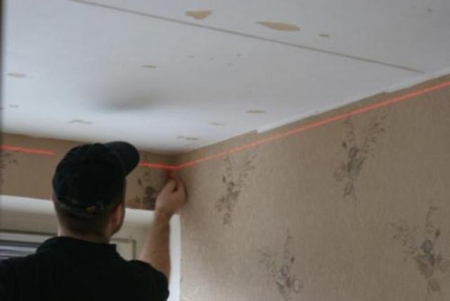 - По потолку проводят прямую линию.