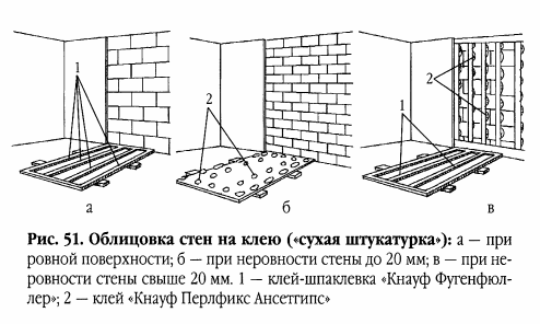 Бескаркасный монтаж (установка гипсокартона на клей)