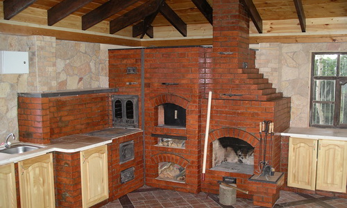 - печь-камин, которая может обогреть дом и приготовить еду.