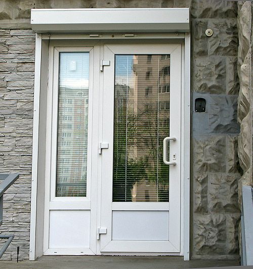 Пластиковые входные двери со стеклом чаще устанавливаются на объектах с высокой проходимостью, однако данный вариант подходит и для частного жилья. В квартирах створка со стеклопакетом или стеклянной вставкой не встречается, но ее иногда располагают на входе в подъезд многоквартирного жилого комплекса. Изделия из пластика получили распространение благодаря привлекательному внешнему виду. Они характеризуются достаточной прочностью, несмотря на остекление.