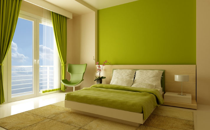 - цвет сочной молодой травы благоприятствует работоспособности и позитиву. Им хорошо украшать детские комнаты и кухни;