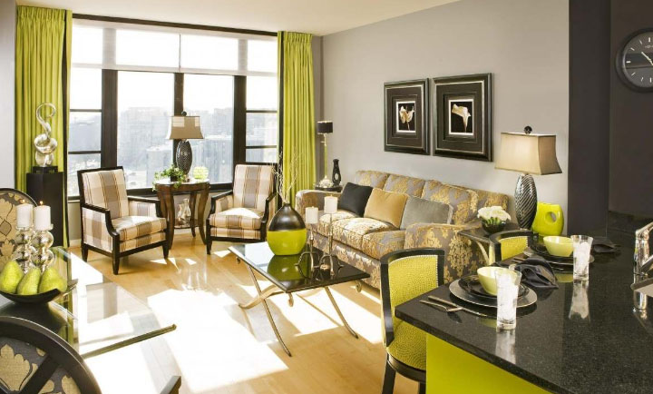 Привносим в интерьер изюминку при помощи зеленых штор