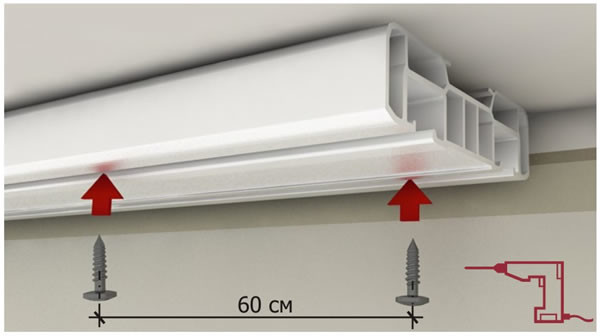 Крепление карниза к поверхности в основном зависит от особенностей отделки стен и потолков. Выбор же самого карниза зависит от интерьерного стиля, в котором оформлено помещение и внешнего вида штор.
