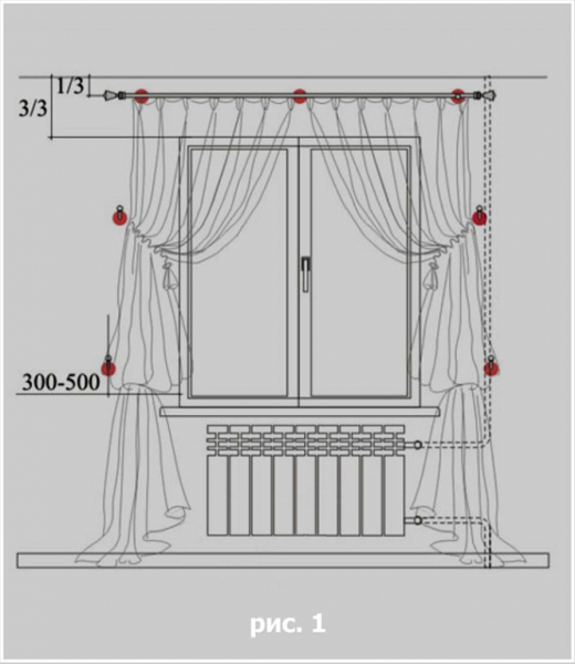 Схема крепления карниза.
