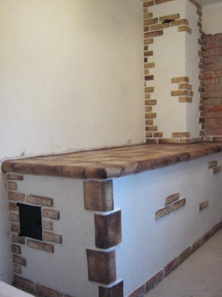 Рассматриваемая отделка может применяться при обработке поверхностей печи, как финишный слой.