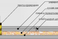 - первой укладывают пленку для ограждения от влаги с захватом на стены в 15 см. Места стыков изолируют скотчем;