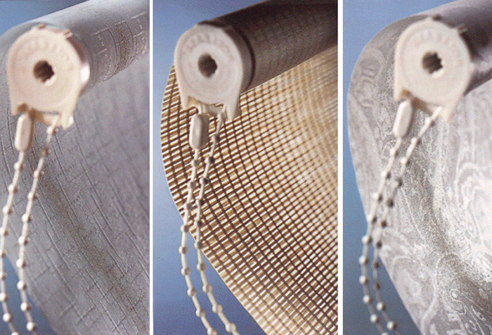 - Заведите полотно шторы в направляющие. На цепочный механизм наденьте кольцо-фиксатор, не позволяющее цепочке проскальзывать по шестеренке;