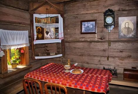 Кроме того, приветствуется украшение жилища медвежьими шкурами, расписной посудой, расшитыми занавесками и балалайками.
