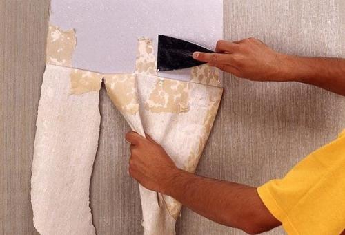 Если обнаружены саморезы, загнанные глубоко в гипс, выкручиваем их и переставляем на 30-50 мм от прежнего места, опять – таки, не допуская повреждений картона. Это необходимо, чтобы уберечь от пузырения и деформации обои, поклеенные в будущем. Если на поверхность остались куски старого декоративного покрытия, аккуратно снимаем их шпателем, предварительно смочив увлажненной ветошью или тряпкой.